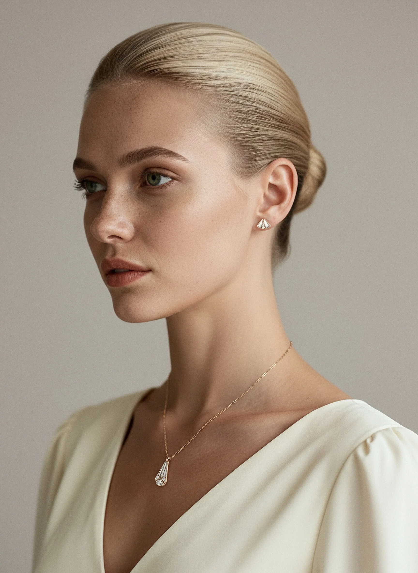 Sleek and luminous — a sculpted curve of pearl and gold, perfect when layered with Orbit I for radiant harmony.
